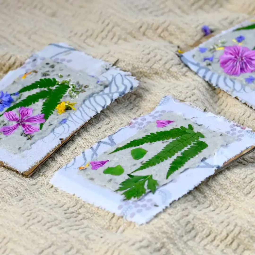 Podczas zajęć stworzymy unikalne kartki z papieru czerpanego z dodatkiem naturalnych składników, takich jak: